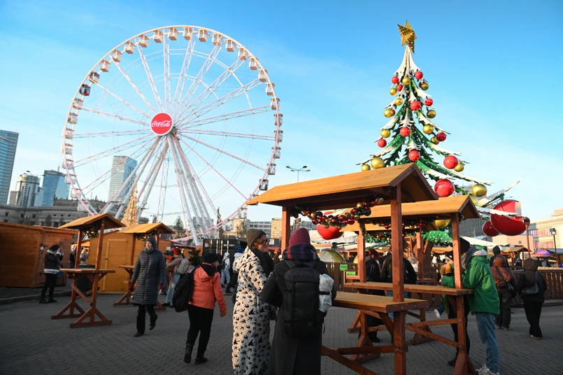 Świąteczny jarmark w Warszawie wystartował 28 listopada. Podobnie jak w innych dużych miastach w Polsce, tak i tu można m.in. wypić grzane wino, herbatę zimową lub zjeść coś na ciepło. Nie brakuje atrakcji w postaci karuzeli oraz diabelskiego młynu.