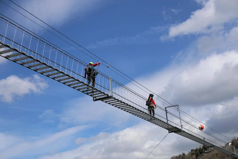 Najwyższa w Europie kładka dla pieszych jest podwieszona między dwoma wzgórzami, na których leżą urokliwe włoskie miasteczka.