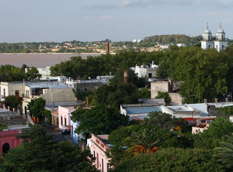 Postanawiamy dotrzeć tam z argentyńskiej stolicy Buenos Aires, położonej po drugiej stronie rzeki La Plata. W tym wypadku słowo "rzeka" – obecne w hiszpańskiej nazwie (Rio de la Plata) jest jednak nieco na wyrost. To po prostu największe na świecie estuarium, czyli poszerzone ujście końcowych odcinków rzek Parana i Urugwaj do Oceanu Atlantyckiego. La Plata wygląda tu po prostu jak morze i przez to właśnie morze postanowiliśmy się przeprawić do Colonii. Podróż wodolotem Buquebus trwa godzinę i 15 minut i kosztuje 75 argentyńskich pesos (ok. 56 złotych). Nie mamy niestety szczęścia i nie możemy podziwiać panoramy Buenos Aires. Podróżujemy bowiem pod koniec września, a na tej półkuli i szerokości geograficznej to początek wiosny, która często przynosi mgły i opady.