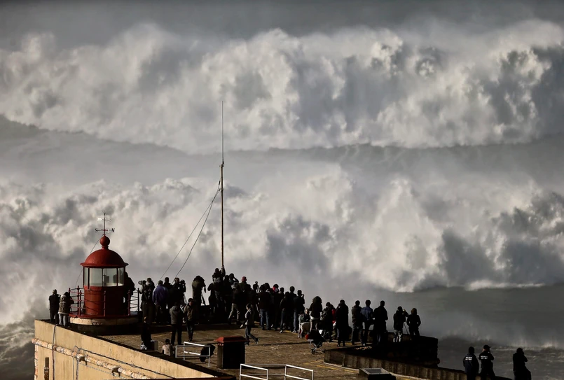 Fale wielkie jak wieżowce i odważni surferzy. Tak wieje w Portugalii